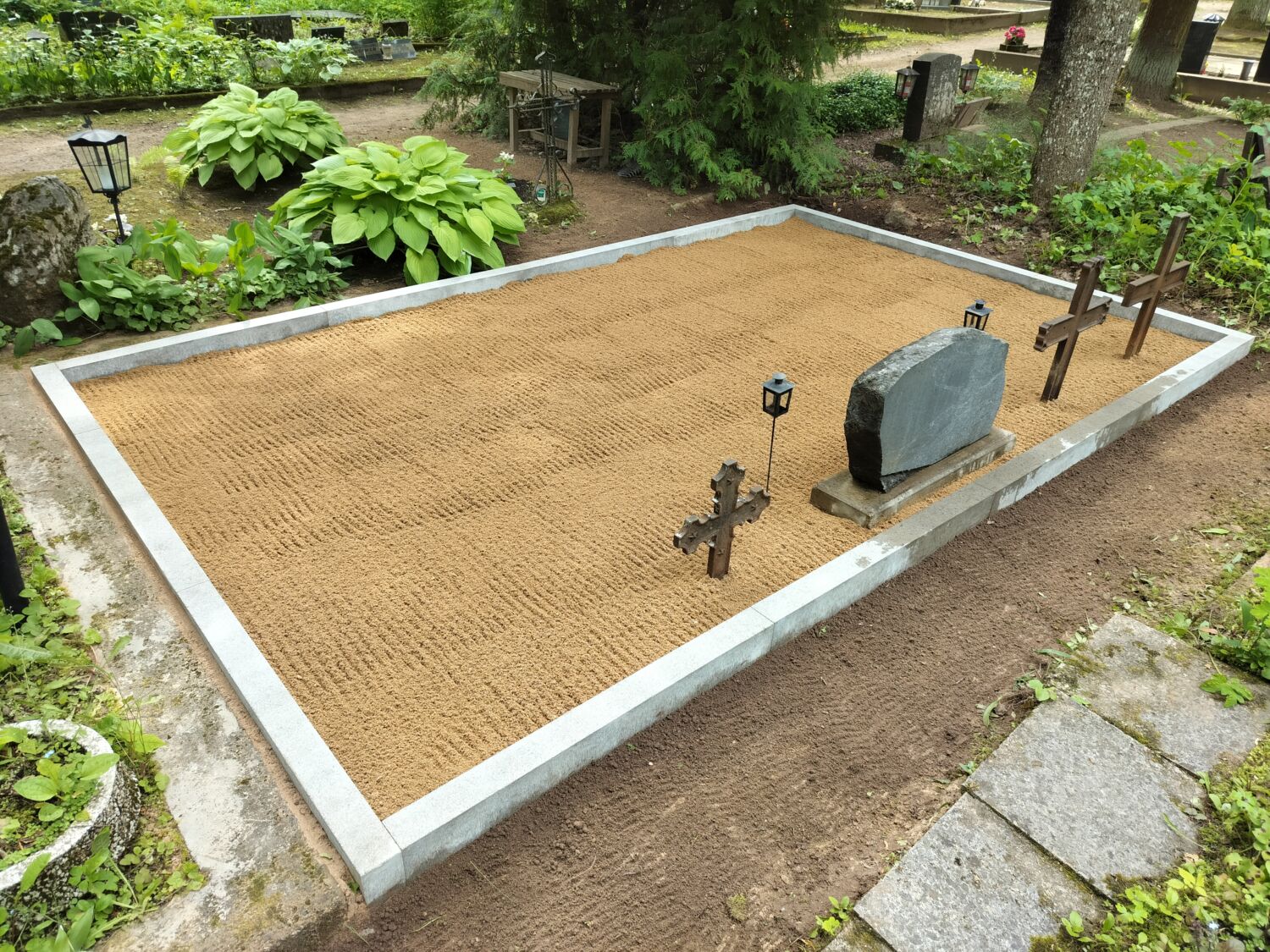 Ehitame hauapiirdeid kõnniteeäärekividest. Kivid on 100cm pikad, 8cm laiad ja 20cm kõrged.
