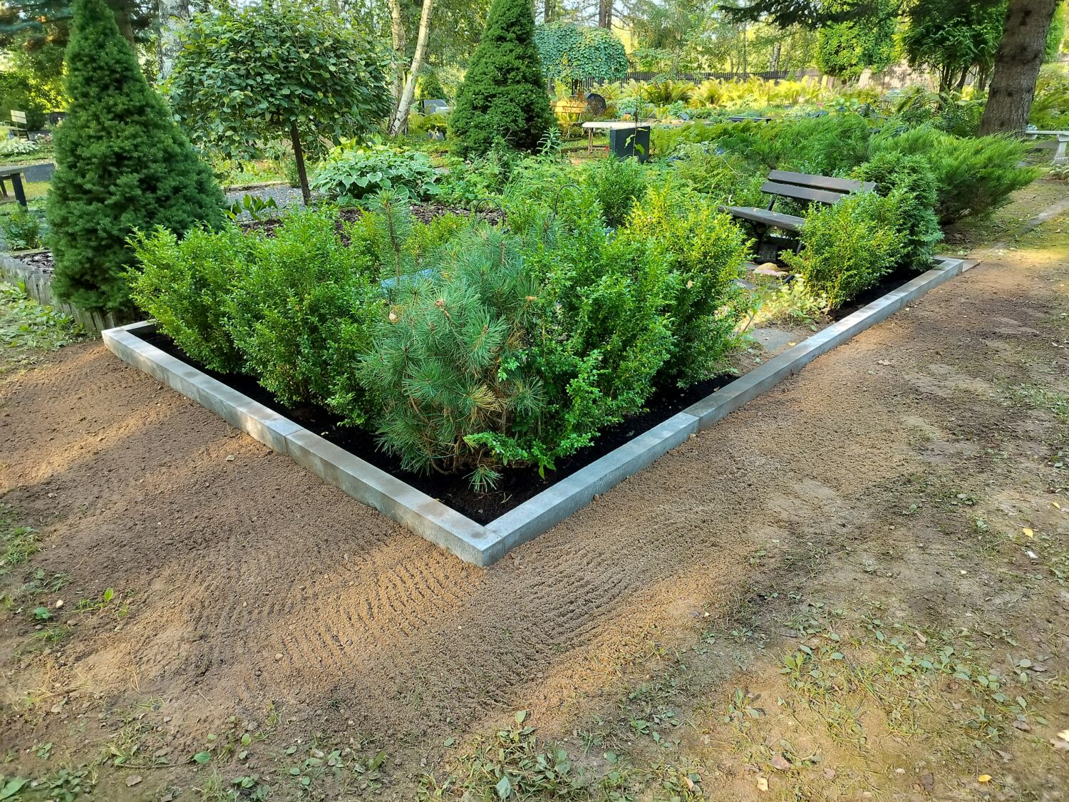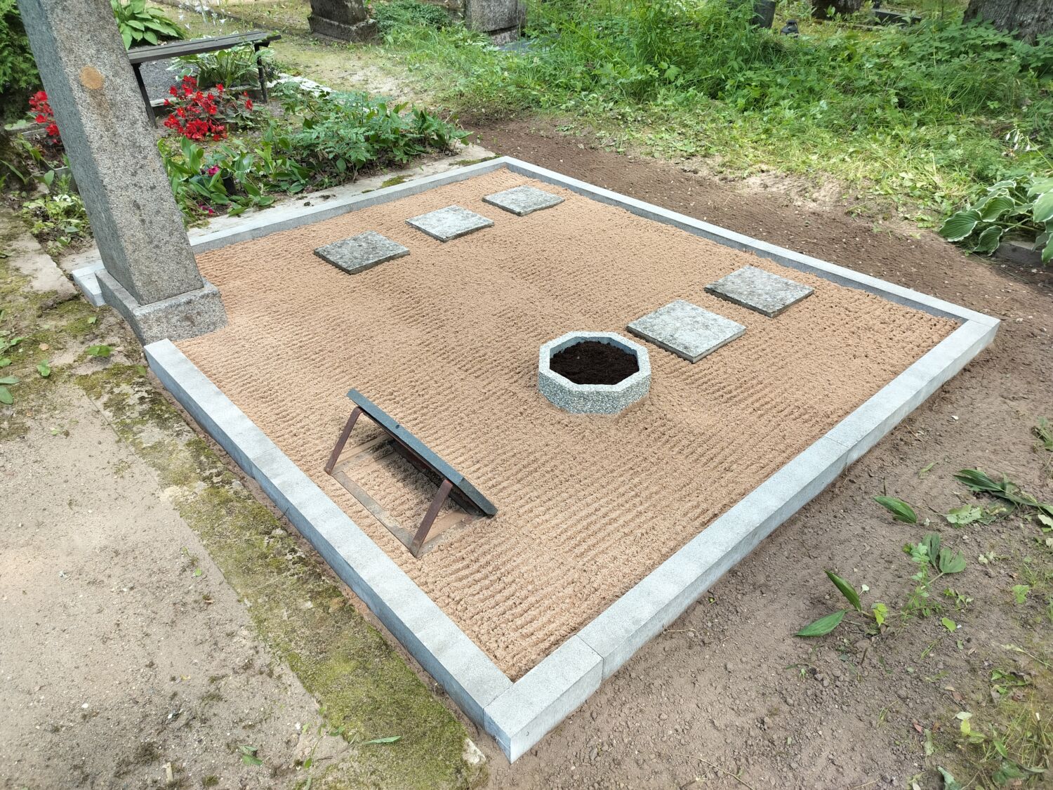 Kõige populaarsem hauapiirde lahendus. Eriliseks teeb selle lahenduse see, et kasutame äärekive tagurpidi ehk faas jääb maa sisse ja kivid on pealt ilusate täisnurksete servadega. Tagurpidi kivide kasutamine aga nõuab lisatööd. Lihvime ise kõik äärekivid üle, kuna tehastes on kivide kvaliteet väga kõikuv. Lihvitud kivi jääb ülimalt viisakas – on öeldud, et meenutab isegi graniidist äärt. Äärekivid kinnitame maa peale seguga.